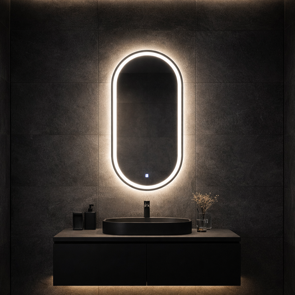 Senzor dodira ugrađuje se u donjem delu ogledala, na sredini. Senzor sadrži ON/OFF funkciju za paljenje osvetljenja. Mogućnost promene inteziteta svetlosti držanjem prsta na unapred definisianom mestu. Boja touch tastera sa prednje strane je 4000k. Dimezija touch tastera je 20x20mm.