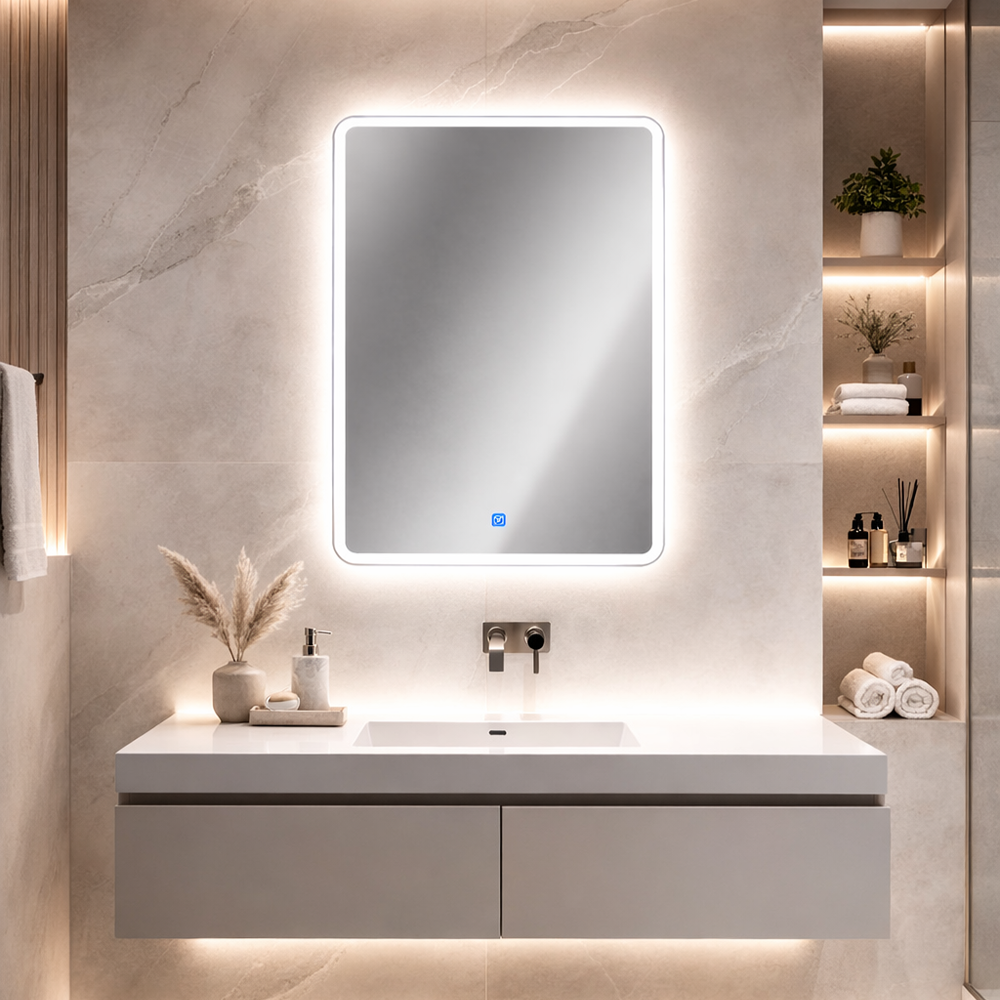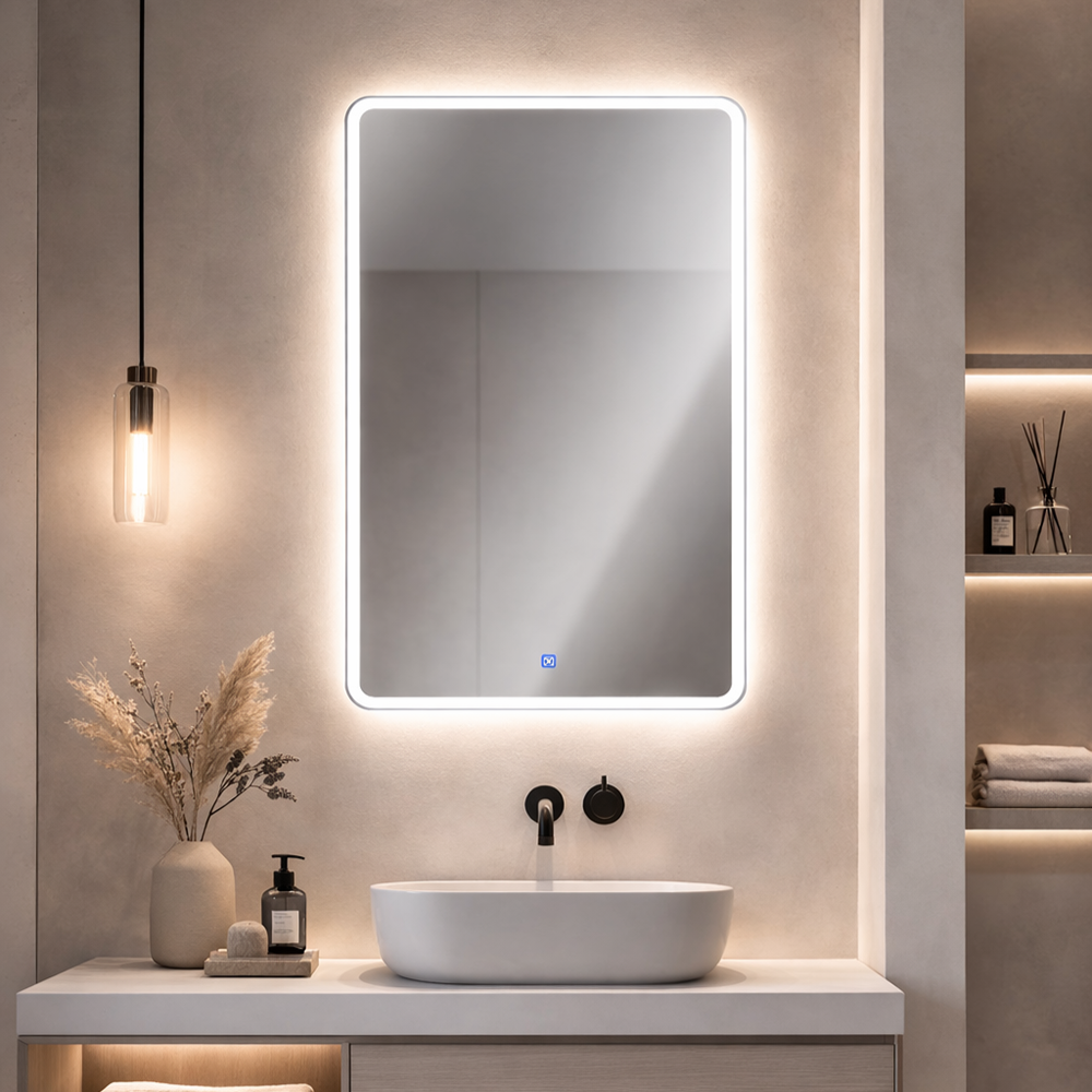 Senzor dodira ugrađuje se u donjem delu ogledala, na sredini. Senzor sadrži ON/OFF funkciju za paljenje osvetljenja. Mogućnost promene inteziteta svetlosti držanjem prsta na unapred definisianom mestu. Boja touch tastera sa prednje strane je 4000k. Dimezija touch tastera je 20x20mm.