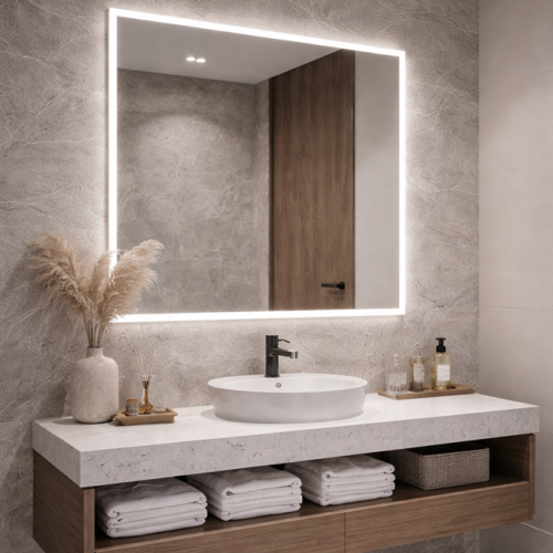 Elektične instalacije predviđene za LED ogledalo spojene su na postojeći prekidač u prostoriji. (Prekidači ispred ulaska u kupatilo ili poseban prekidač unutar kupatila ili neke druge prostorije).