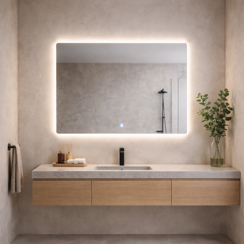 Senzor dodira ugrađuje se u donjem delu ogledala, na sredini. Senzor sadrži ON/OFF funkciju  za paljenje osvetljenja. Mogućnost promene inteziteta svetlosti držanjem prsta na unapred definisianom mestu. Boja touch tastera sa prednje strane je 4000k. Dimezija touch tastera je 20x20mm.